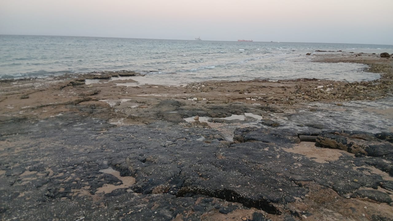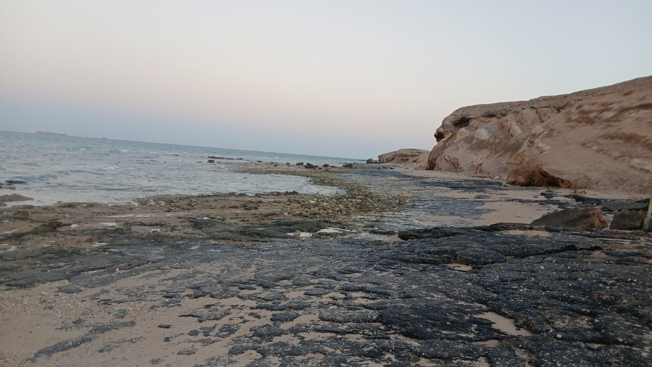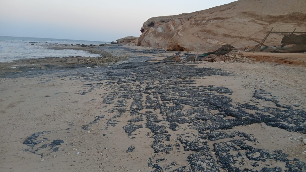 بالصور : تسريب زيت علي شاطئ الزعفرانة بما يضر بالثروات البترولية ويهددالنظام البيئي